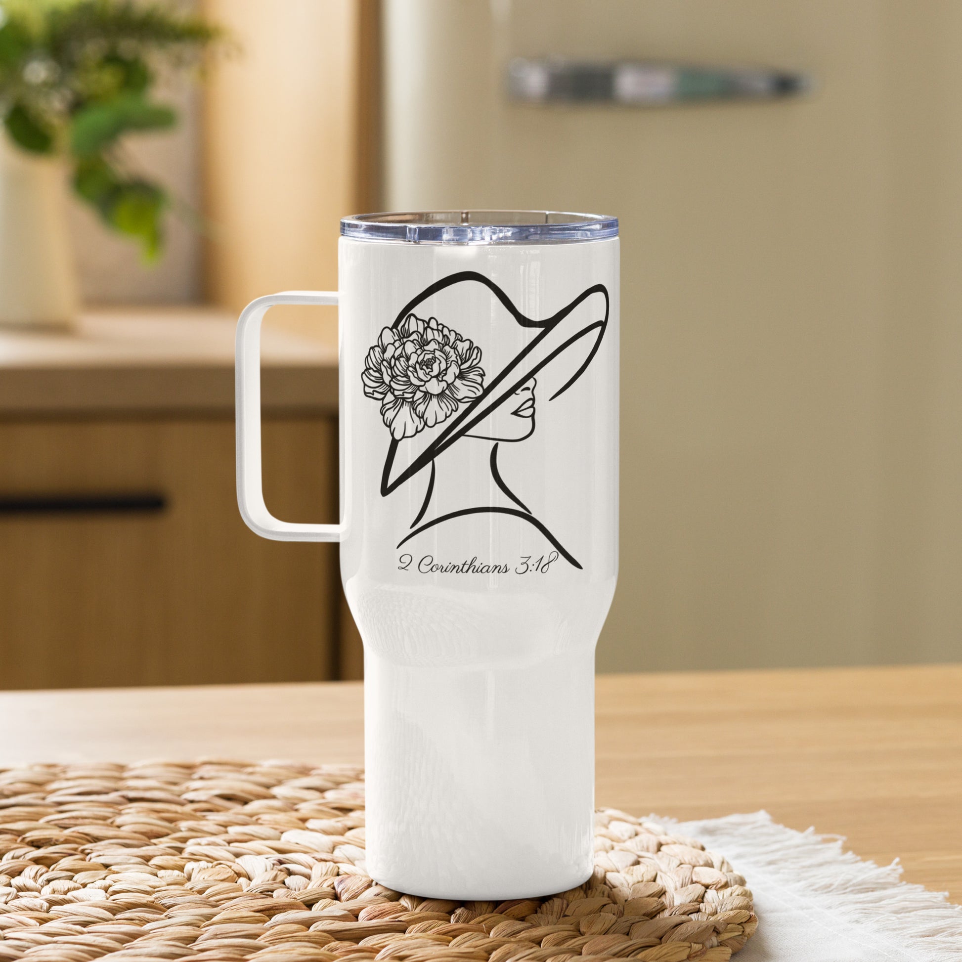 Sweet tea will stay cold or hot beverages will remain steamy and comforting with this elevated travel mug. You will just love taking this mug wherever you go to show your southern sophistication. It fits into most car cup holders and has a spill-proof plastic lid. Commute to work or go on new adventures—this travel mug will make you happy as a lark, bless your heart!